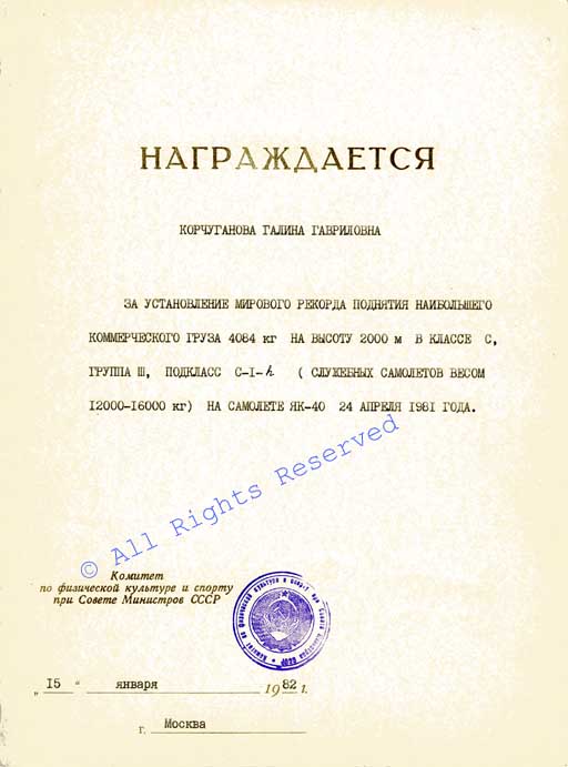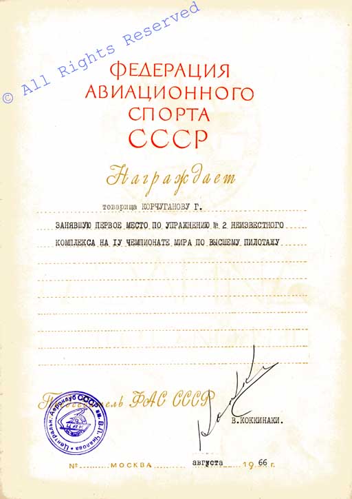 От Федерации авиационного спорта СССР |