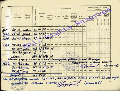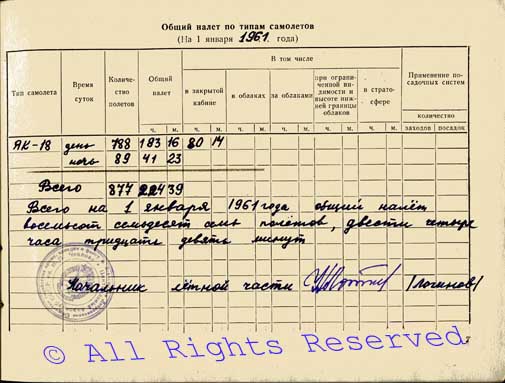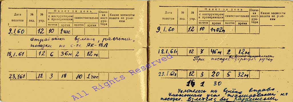 Дневник учёта полётов Корчугановой Г.Г., 1961 год |